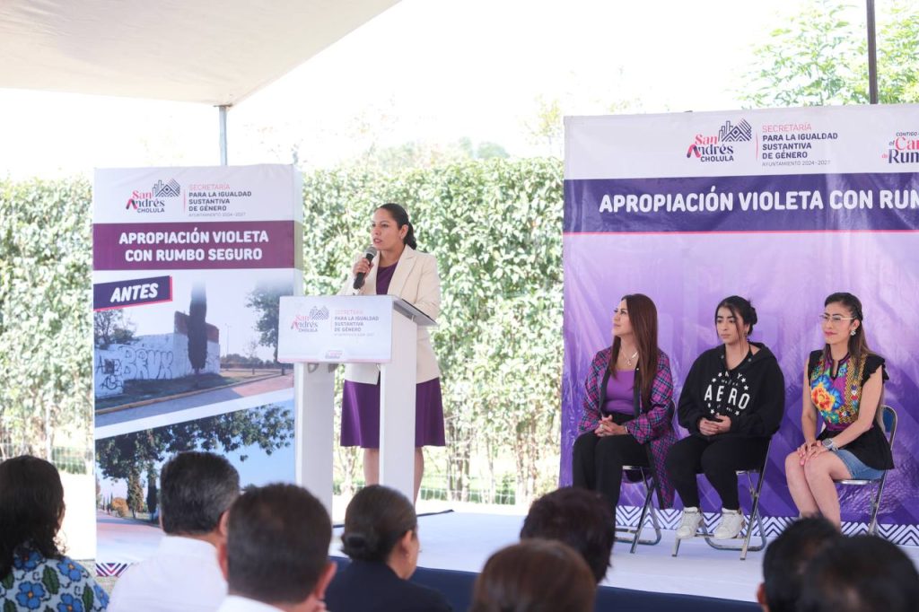 San Andrés Cholula, Puebla. – Para generar conciencia, prevenir la violencia de género y fortalecer la seguridad en espacios públicos, la presidenta municipal Lupita Cuautle Torres encabezó la estrategia Apropiación Violeta en el Parque Intermunicipal.