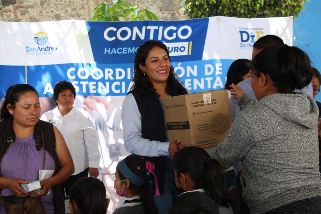 San Andrés Cholula, Puebla. – Derivado del trabajo coordinado con el Gobierno del Estado, el edil Mundo Tlatehui Percino y Lupita Cuautle Torres, presidenta del Patronato del Sistema Municipal para el Desarrollo Integral de la Familia (SMDIF), encabezaron la entrega del programa “Desayunos Escolares en su Modalidad Fríos” a más de 3 mil menores de edad.