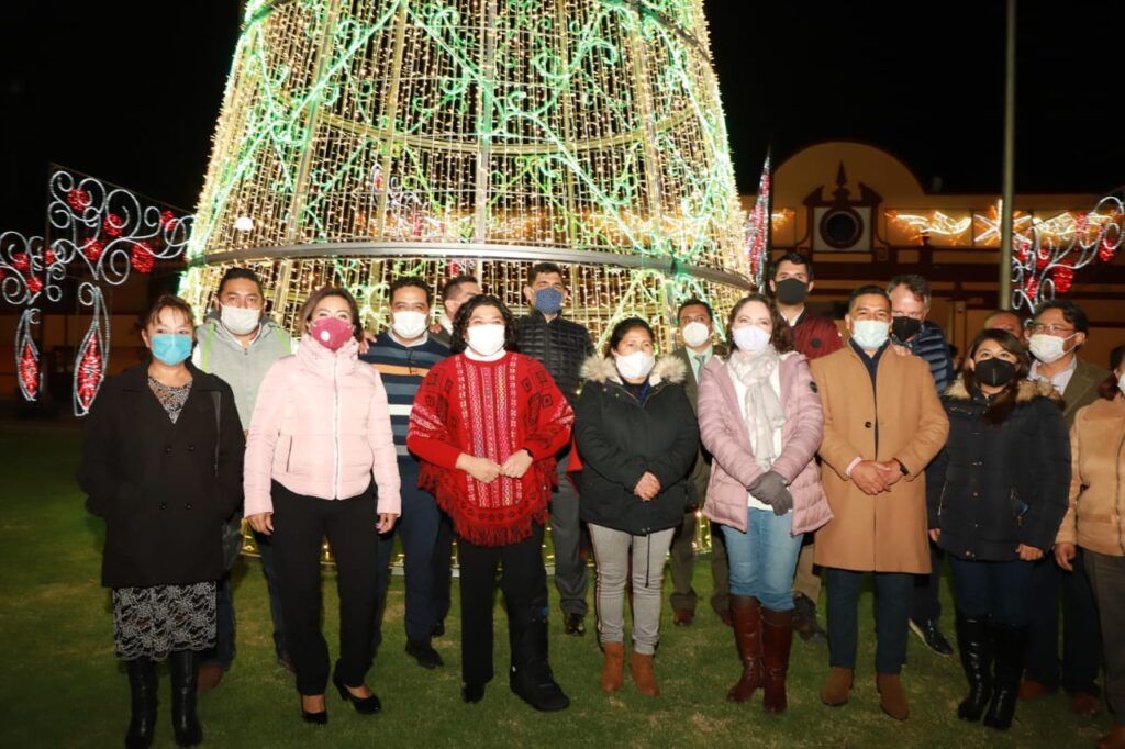 La presidenta municipal, Karina Pérez Popoca, encabezó en el zócalo municipal el encendido del árbol de Navidad e iluminación decorativa para la temporada decembrina.