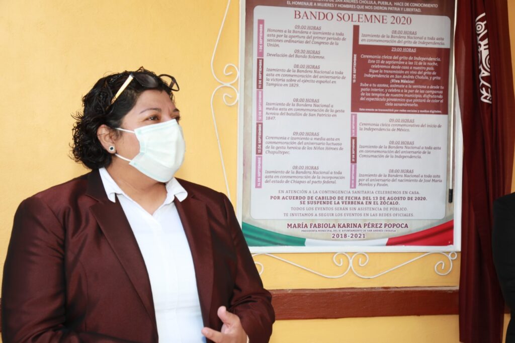 Durante su recorrido y develación del Bando Solemne 2020 en los 5 puntos de la cabecera municipal, recordó que San Andrés Cholula suspendió todos los eventos masivos del 1 de agosto al 31 de diciembre, ello con el fin de prevenir contagios en el municipio, por lo que anunció que las celebraciones patrias se llevarán a cabo de manera digital a través de la página oficial de Facebook @SnAndresOficial.