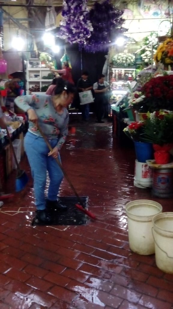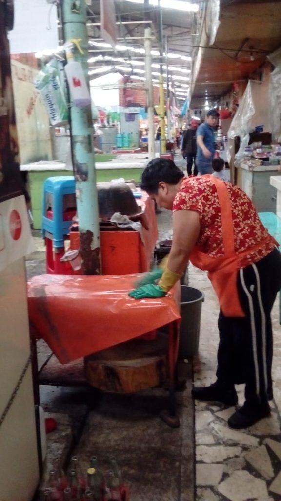 San Martín Texmelucan, Pue.- El Gobierno municipal a través de la Dirección de Desarrollo Económico, Industria y Comercio, junto con locatarios del Mercado Domingo Arenas, realizaron una jornada de limpieza como parte de las acciones de prevención por el coronavirus COVID-19.