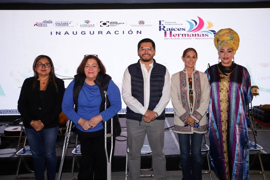 San Andrés Cholula, Puebla. – Con el objetivo de consolidar al municipio a nivel internacional en los ámbitos turístico y cultural, así como fortalecer los lazos con la República Dominicana, el Ayuntamiento de San Andrés Cholula, encabezado por Lupita Cuautle Torres, inauguró el Primer Festival Intercultural “Raíces Hermanas”, a través de la Secretaría de Cultura y Turismo.