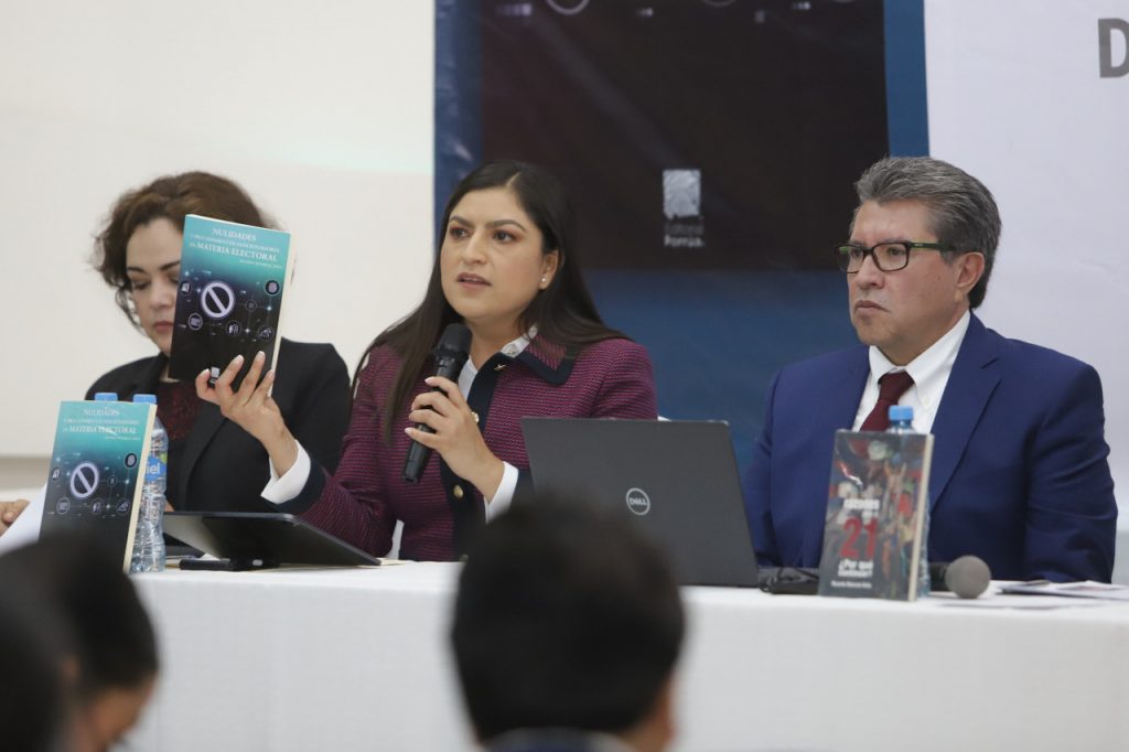 La mañana de este lunes, la candidata de la Coalición Juntos Haremos Historia, Claudia Rivera Vivanco, presentó el libro Nulidades y procedimientos sancionadores en materia electoral, el cual es autoría del senador Ricardo Monreal Ávila.