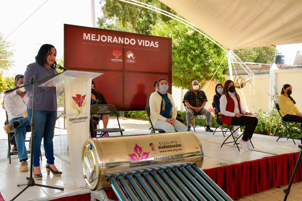 Con una inversión de 824 mil 997 pesos, provenientes de recursos propios, la Presidenta Municipal de Cuautlancingo, Lupita Daniel Hernández, encabezó la entrega simbólica del Programa Municipal “Mejorando Vidas 2021, el cual consistió en la entrega de 250 calentadores solares, los cuales además de apoyar la economía de las familias, permitirá impulsar el desarrollo sostenible del municipio.