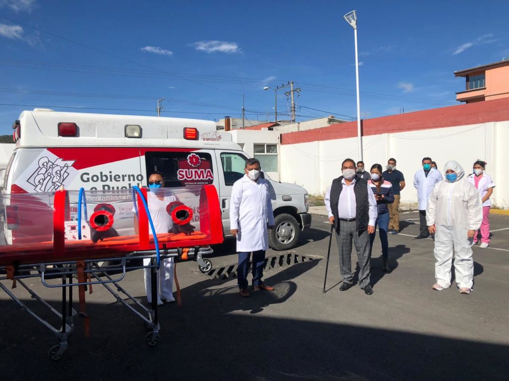 Amozoc, Puebla.- Siguiendo con las acciones de prevención ante la emergencia sanitaria, este fin de semana el presidente municipal de Amozoc, Mario de la Rosa Romero, junto a la regidora de Salud, Angélica Rodríguez, realizaron la donación de una camilla al Centro de Salud con Servicios Ampliados (CESSA) para trasladar a personas con síntomas de Covid-19.