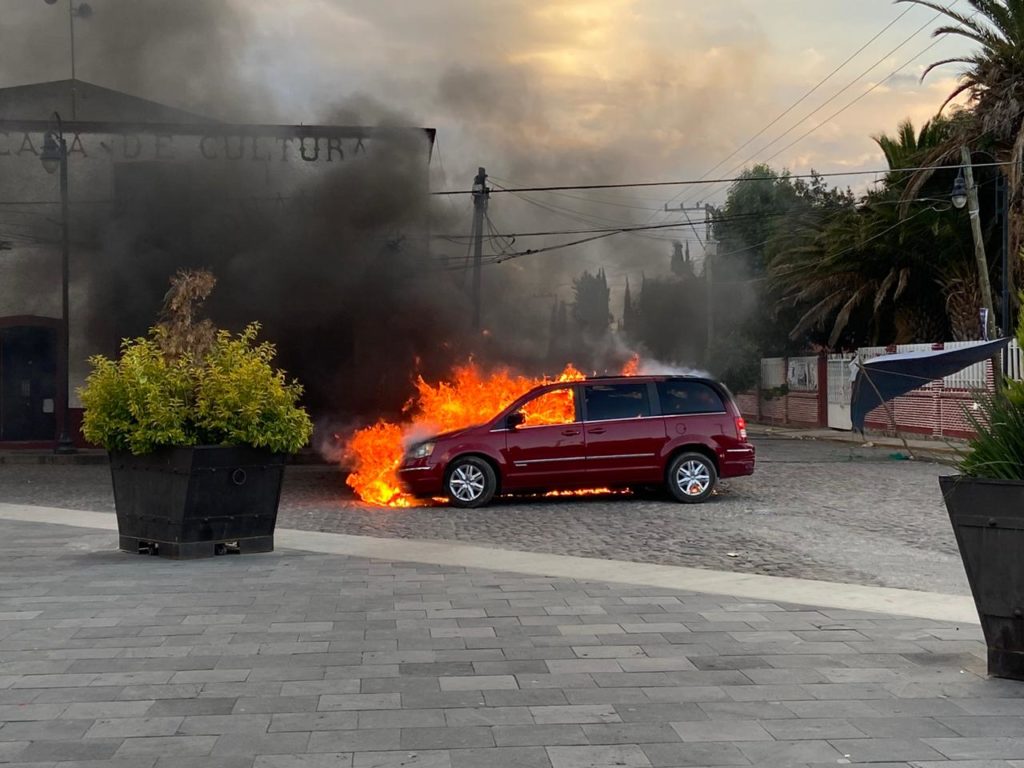 En el lugar fueron agredidos dos policías municipales e incendiados dos vehículos; acudió personal de Bomberos del municipio sin que los pobladores.