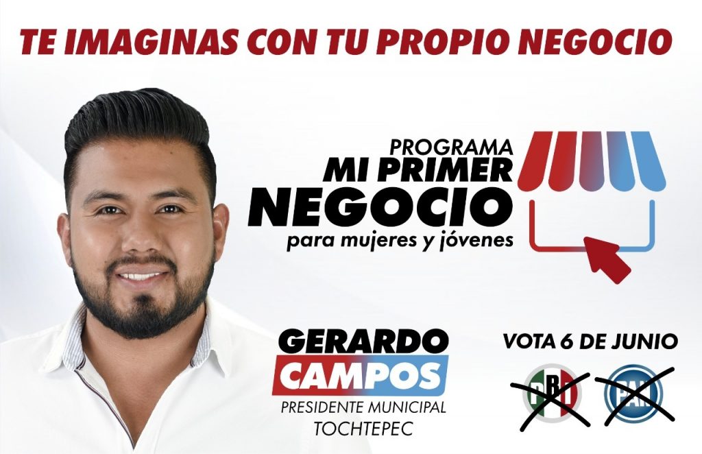 Para brindar más y mejores oportunidades a las mujeres y jóvenes del municipio de Tochtepec, el candidato del PAN y PRI a la Presidencia Municipal Gerardo Campos, propuso el programa “Mi Primer Negocio” con la finalidad de impulsar la economía local.