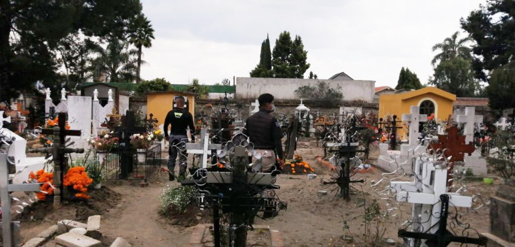 Para reforzar las medidas sanitarias ante la contingencia por Covid19 durante la temporada de muertos, el Ayuntamiento de San Andrés Cholula, a través de la Dirección de Protección Civil y Bomberos, recorre los panteones de las juntas auxiliares e inspectorías para evitar la aglomeración de personas, además de verificar que se cumplan los protocolos de ingreso a los cementerios.
