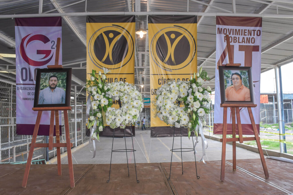 San Martín Texmelucan, Puebla. – Agremiados tianguistas, y amigos del COP, con un emotivo homenaje despidieron a Cirilo Rocha Pérez y Pedro Ramírez Solís, quienes fueron ultimados el pasado 28 de junio tras un ataque cobarde por grupos de choque, resultando también un intento de homicidio de la Secretaria General de esta organización, Elim Garzón Badillo.