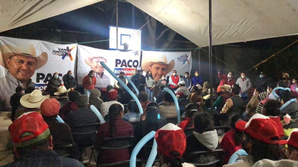 “Los saludo desde el barrio se San Juan, desde donde estamos esta noche platicando con los vecinos sobre seguridad y recuperación de espacios. De cómo hemos logrado avanzar en esos rubros y de por qué continuar con el proceso de transformación que está ocurriendo en Libres”, expresó el candidato en el uso de la palabra.
